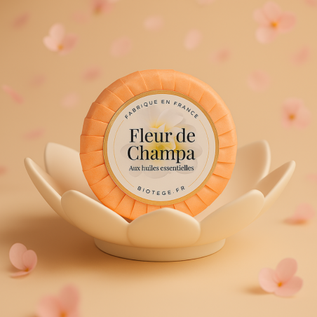 Bénéficiez d’un moment de douceur intense avec la bombe de douche Fleur de Champa.